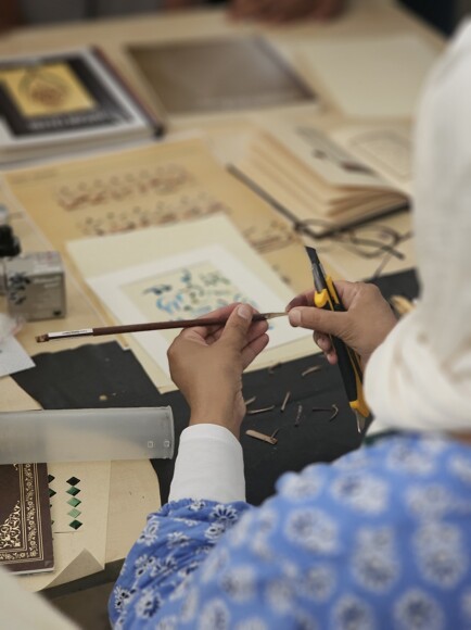 Their teacher for the day, Gulnaz Mehboob, was trained by the late Master Hasan Çelebi—widely respected as the Chief Master of Calligraphy (Reis ‘ul Hattatin). She guided students through the essential tools and techniques used in this ancient tradition.